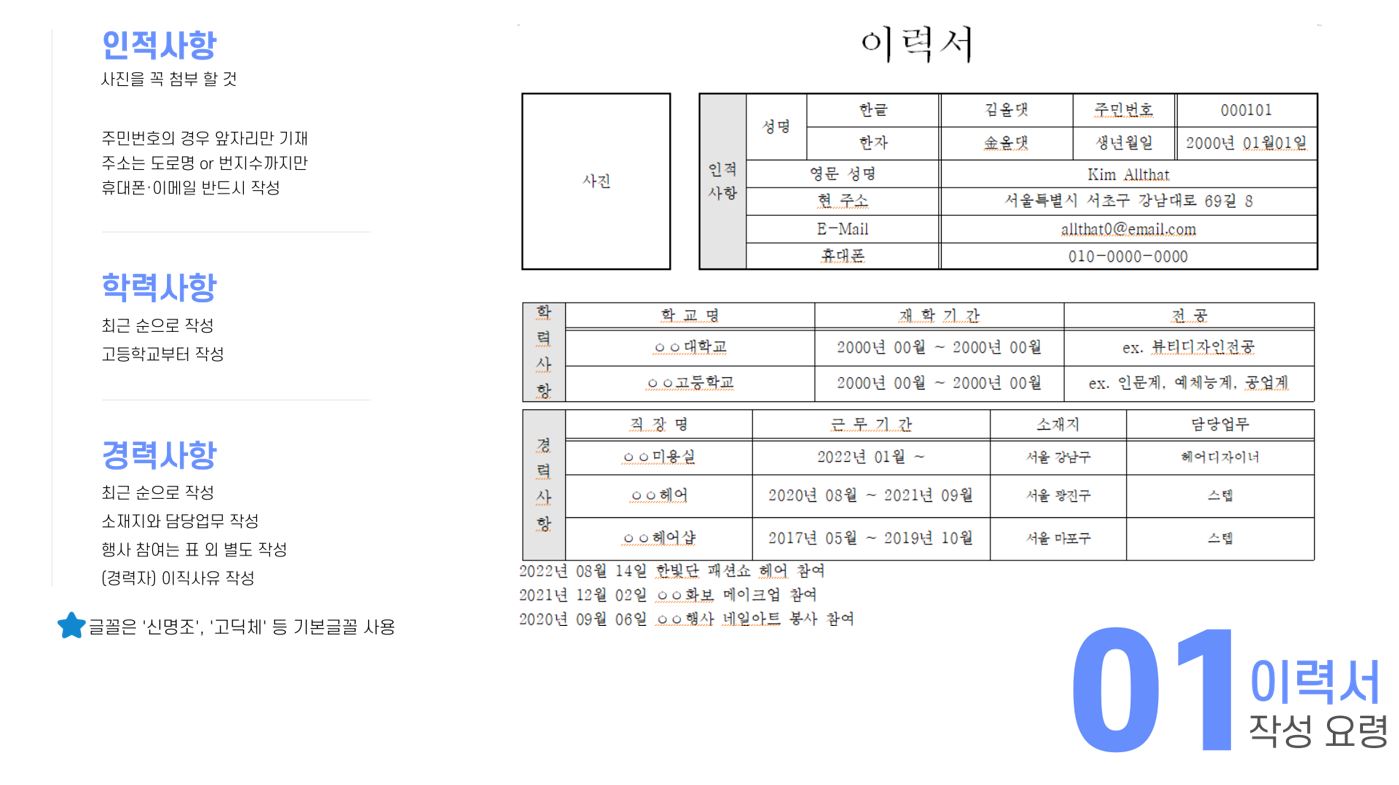 올댓뷰티아카데미취업준비생을 위한 면접 합격 프로젝트!!